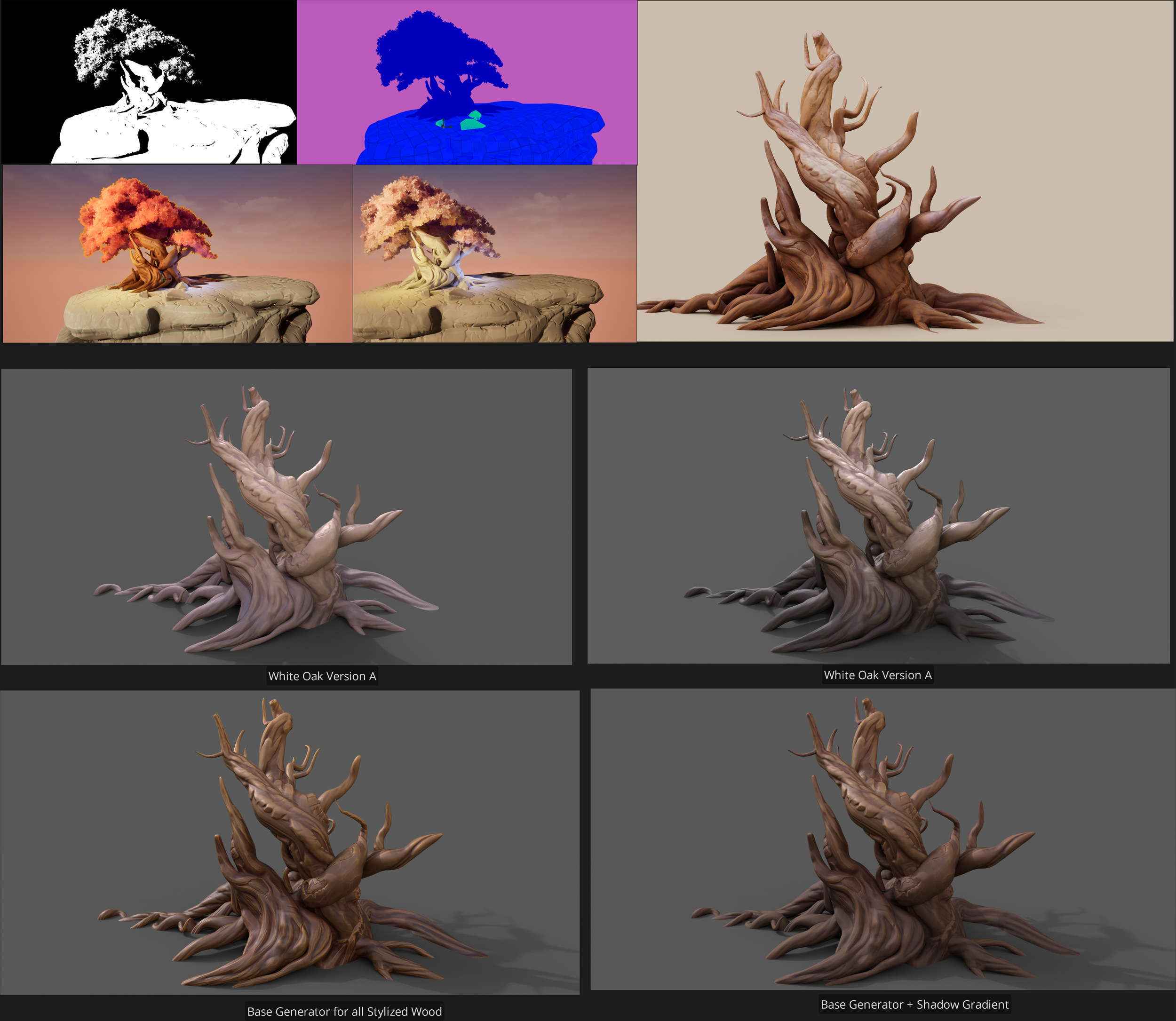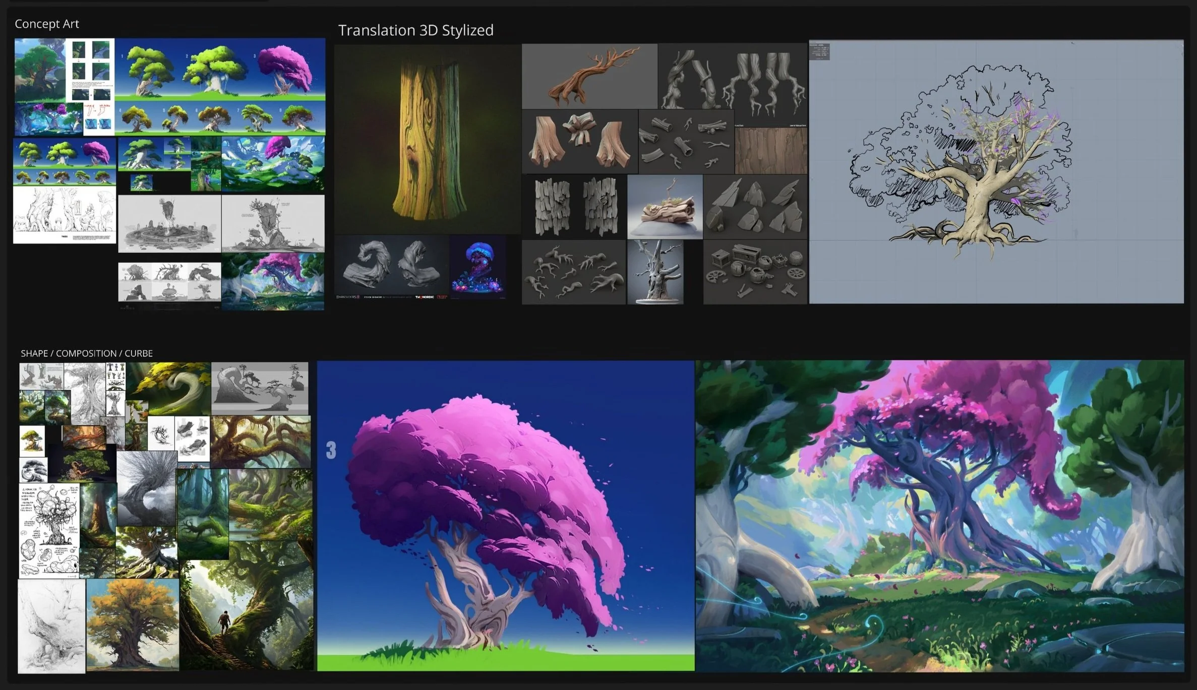 A comprehensive mood board was developed, integrating various stylized tree designs, shapes, compositions and concept art from the art tream. These references guided the visual and thematic alignment of the assets with the game's requirements.