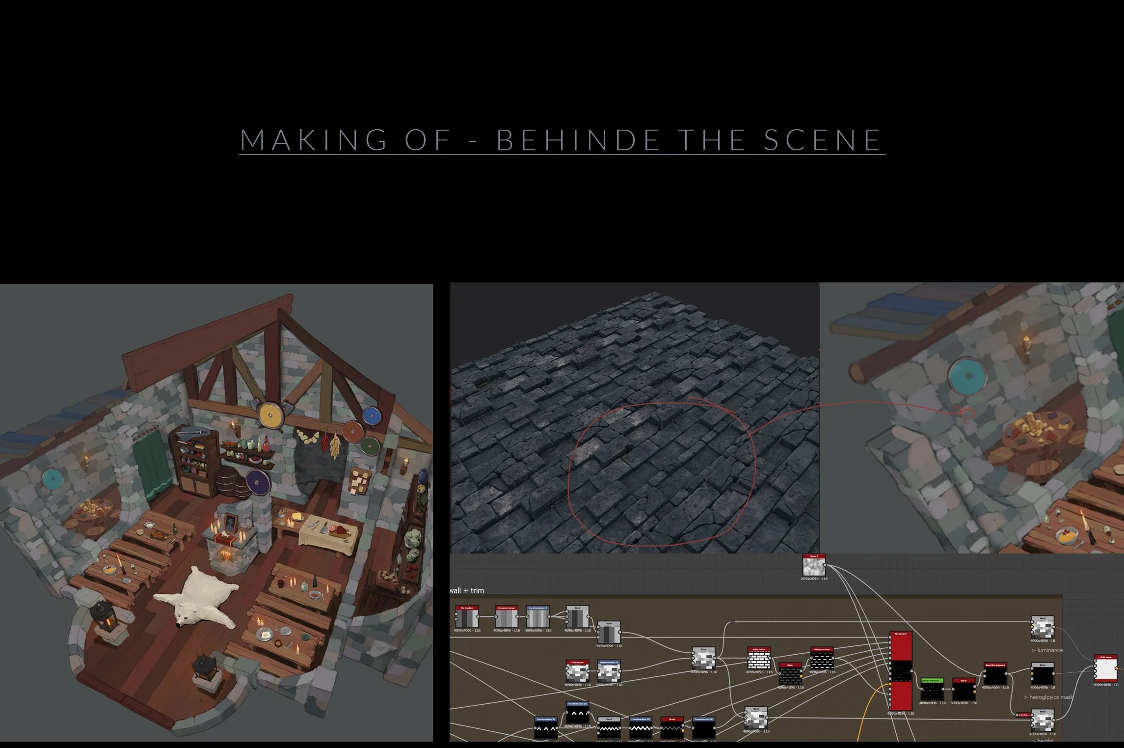 The main goal was to create a stylized material on substance designer. It allowed me to generate multiple modular variation and tiling sample. Substance Designer is a requirement to gain a lot of flexibility.